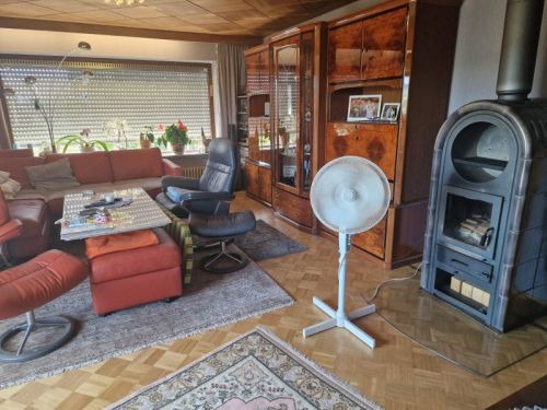 Holzofen im Wohnzimmer des Erdgeschosses kann bleiben. Betrieb vom Kaminkehrer genehmigt.