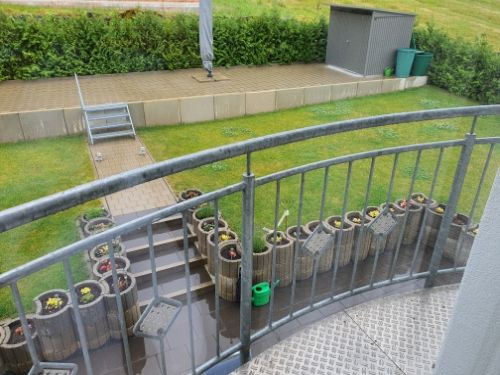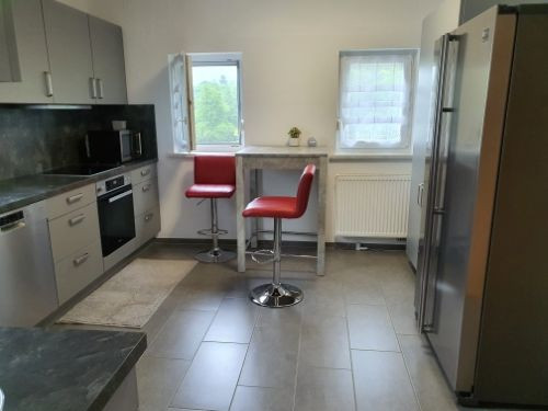 Erdgeschoss 87 m²: Wohnzimmer (Vinyl-Laminat, moderne Folien-Decke (2011), Küche incl. Kücheneinrichtung (2018, Fliesen), Dusche + WC (2018, Fliesen), Flur (Vinyl-Laminat), Terrasse,