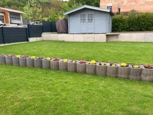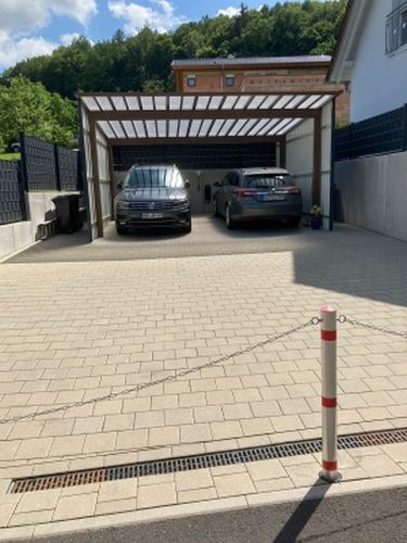 Garten - neu angelegt - mit neuem Gartenhaus und Holzhaus, Doppelcarport (2018), Hof.